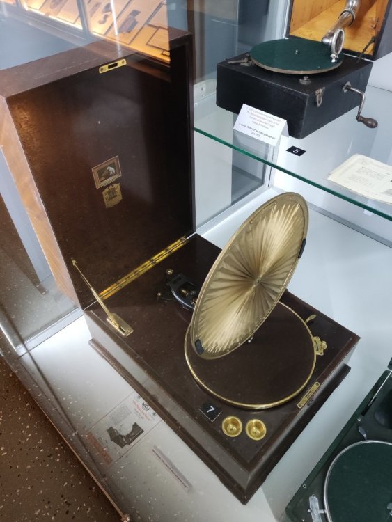 Thanks for sharing those. An interesting combination of common and rare machines. I just sent them a message about their Hardy, to see if I can get the serial number for my files. I don't have this one listed under the museum's name, but I suspect it might be the one from the EMI collection, which is documented. The picture shows a very unusual speaker arm clamp, and an apparently replaced crank knob. I suspect it has been repainted -- it appears very glossy, and does not seem to have the usual gold pinstriping. -
