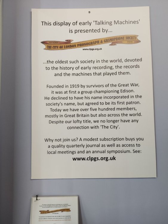 Photos of the City Of London Phonograph Society displays in the Musical Museum, Brentford UK