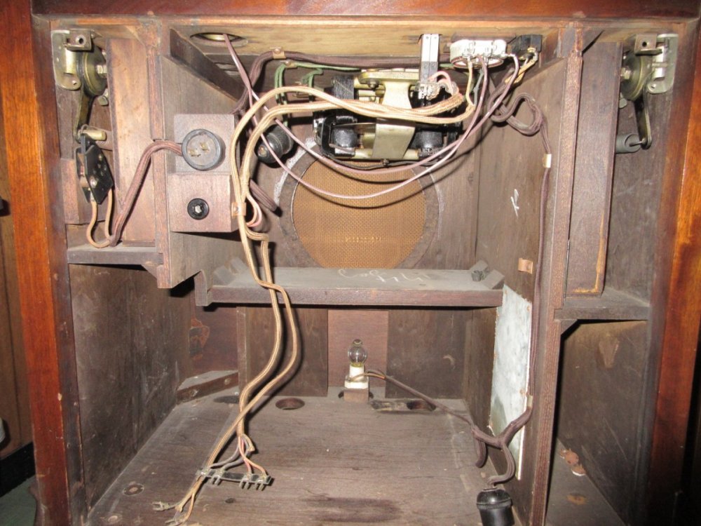 At this point I have found some of the missing parts and repaired most of the damage to the cabinet, and rewired the motor .The only components still missing are the AP-736 amplifier and the speaker. I hope you enjoy the progress so far.