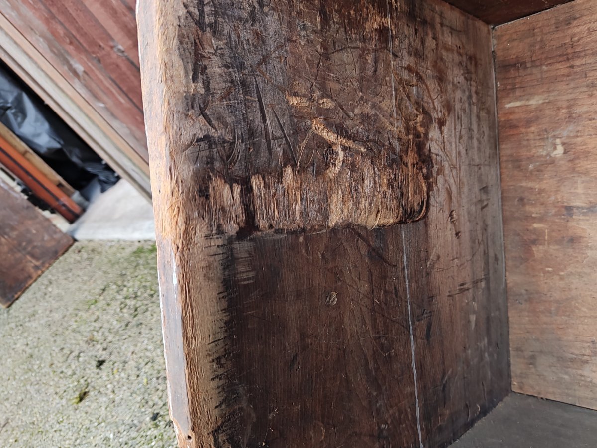 AtRicky1 Posted 5 hours ago Author Posted 5 hours ago (edited) The final piece of the puzzle...and not a pretty sight. This the case for the phonograph. I have absolutely no idea why it is covered in paint. All I can say it thank goodness the phonograph was inside not outside....From the interior markings you can see it's had a lot of movement over the years. The front 'lid' is broken but that can be remedied. It just needs a couple of old nails to be sourced to move the plank back into position. Perhaps a little wood glue if it's not visible. The lock too - if it's salvageable - also needs some work and a new key. The only thing is what to do about the condition. Of course the paint could be stripped, I think it's just white emulsion. However, this would destroy the 'history'. Also I love the fact that when people see it they will see the contrast. Didn't expect that inside! Anyway, will be the last thing to deal with. Would much appreciate some thoughts on what to do anyone? Thanks. Edited 5 hours ago by AtRicky1