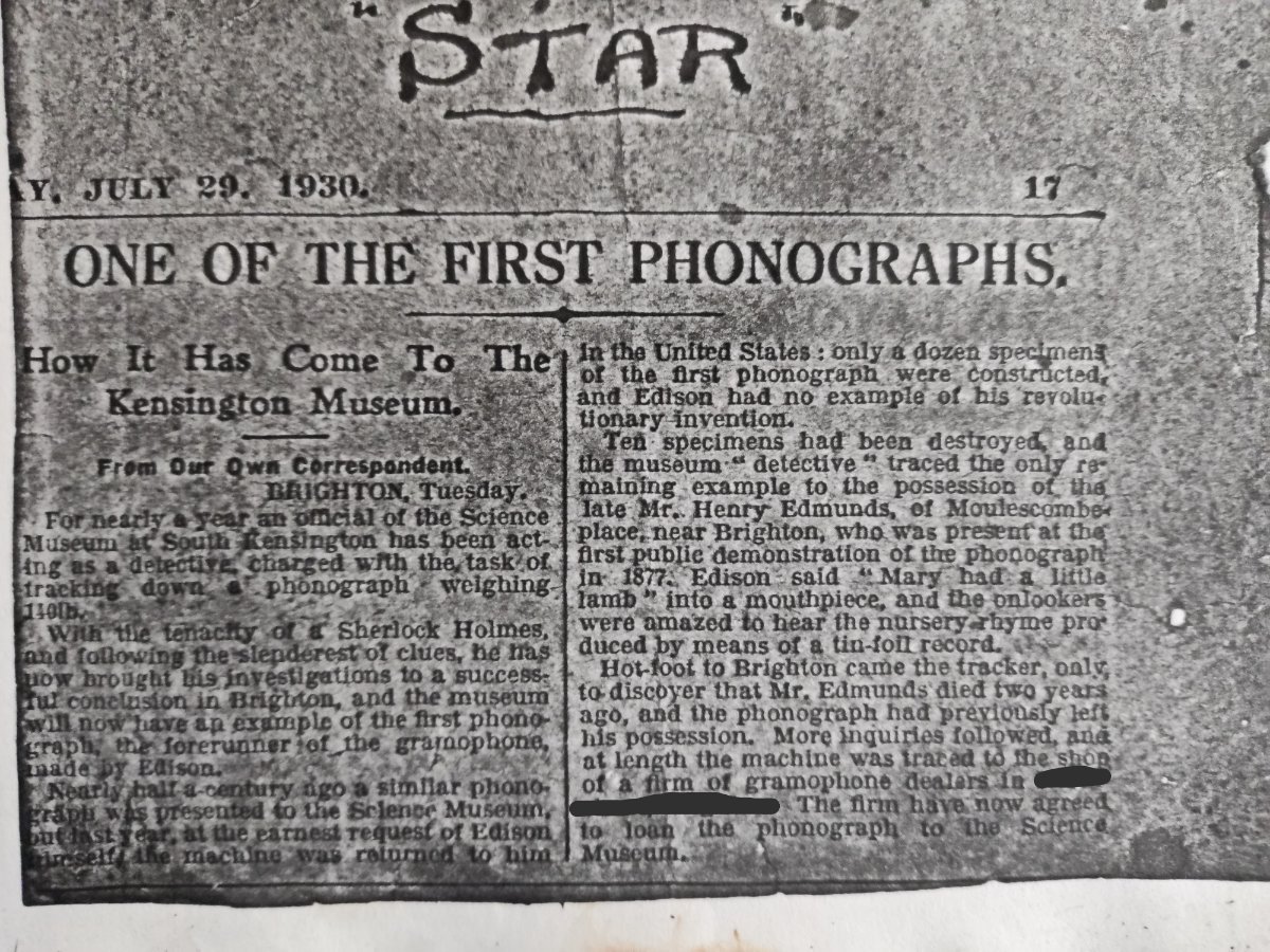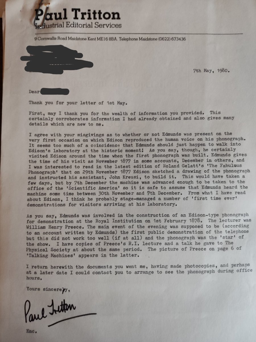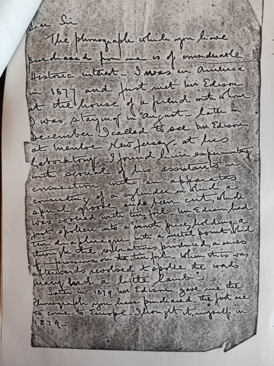 AtRicky1 Posted January 17 Author Posted January 17 On more document that you may or may not already have. I have quite a bit of other material relating to Edmunds following this. Standard Model Exhibition Tinfoil PHonograph_TAEP_Volume4.pdf