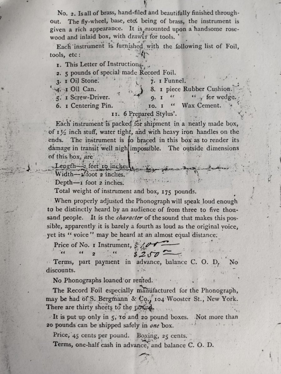 Tinfoilphono Posted January 14 Posted January 14 Quote Amazing he was paying for his own machine. Not really. Edison signed over the rights to the phonograph to the Edison Speaking Phonograph Company, which had several wealthy financiers backing it. The ESPCo was formed to exploit the phonograph. Initially they looked at selling small machines to the public, but that was almost immediately abandoned, in favor of licensing exhibitors to have exclusive use in specific geographic areas. Several machine shops were solicited to manufacture phonographs in the spring of 1878. By summer several improvements had been made, and Sigmund Bergmann was contracted to make the large exhibition machines that dominated the market for public exhibitions. Yours fall into that group. The Edison Speaking Phonograph Company incurred significant costs in making machines, but offset those with profits on their sales, and on royalties from their use in public exhibitions. Edison also earned royalties as part of the licensing deal. But when he wanted a machine to gift to some notable person, ESPCo had to expense that cost since they were taking the financial hit. Edison himself didn't finance their manufacture so he was was charged.