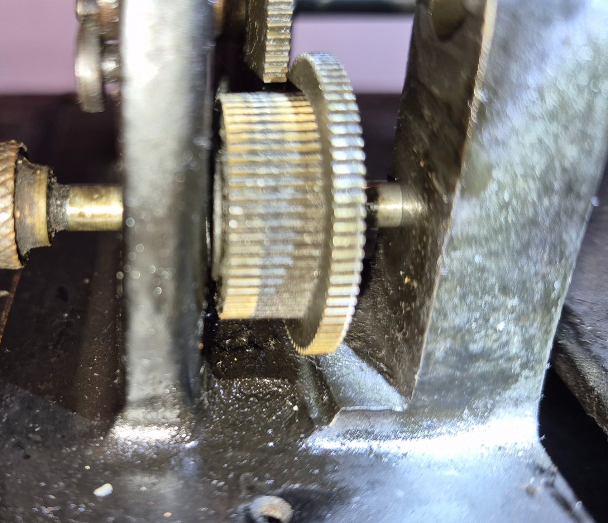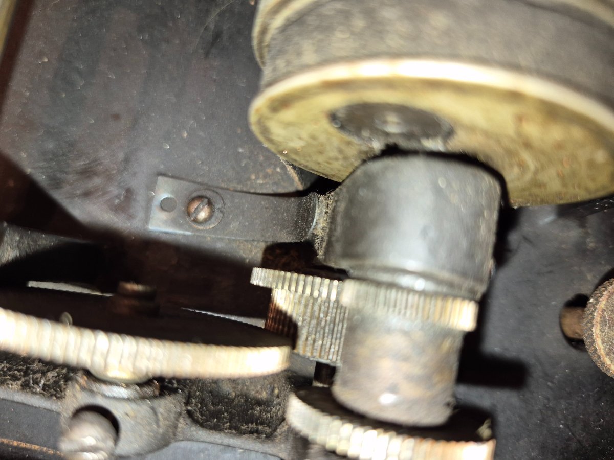 amberola75 Posted Wednesday at 03:05 PM Author Posted Wednesday at 03:05 PM I did a little more digging into this machine. First off, there is a gear machined into the side of the mandrel. It serves no purpose in this application. It may have been used in the development of the 2-4 minute planetary gear system used for the Home gear change, but never used. (just a guess) In the next picture you can see a spring steel clip that acts like a bullet latch for the gear change sliding shaft. The last picture shows where the main mandrel Lug is machined down to make room for the 2-4 switching gear. Judging from the amount of dirt and grime, this was done long ago. It makes no sense for some back yard machinist to add a gear change to this model because a). You would have to have a Fireside A or Gem D to get the needed parts, so why bother, and b). who would have access to the machining devices necessary to perform these modifications back in the day. BUT, if I were an engineer working in an Edison R&D program, I could very easily see this machine sitting on my desk for designing and developing newer models. That bullet latch was scrubbed when the little piece of spring steel was added to the 2-4 minute sliding shaft. Just my thoughts. The electric reproducer could have been another product in the designing stages. Just my thoughts. Jim